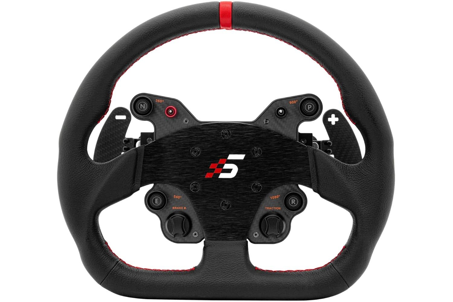 En av märkets rattar är GT1. Det här är en mångsidig ratt som finns i två varianter: en med platt bas (D-Shapre) och en med helt rund form. Dessutom finns den tillgänglig i läder eller alcantara. I det följande kommer GT1 att testas i vår sim-racinganläggning.