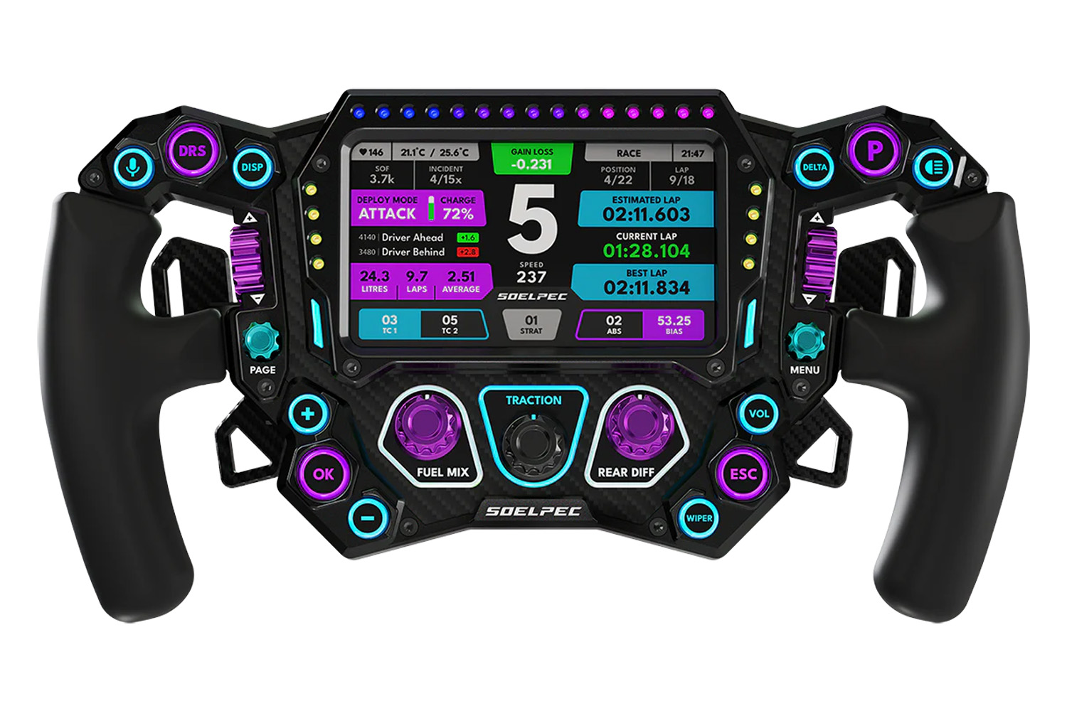 SOELPECs Spectra XR är utan tvekan ett av de mest avancerade simracinghjulen på marknaden idag. Allt i dess design visar att det riktar sig till en krävande publik som söker en exklusiv och särskilt fulländad produkt.